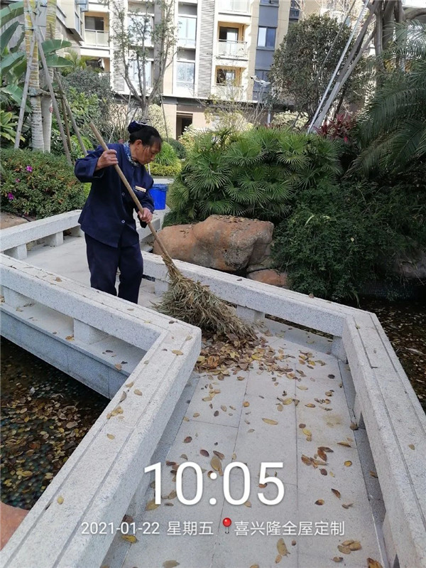 有这样一群人,默默无闻,他们的身影随处可见,虽然做着琐碎繁重的工作,但依然认真做好工作,真诚地对待业主。“一尘不染、干净整洁”是他们铭记的工作标准,“踏踏实实、勤勤恳恳”是他们践行的工作准则。处理生活垃圾、扫地面、擦拭公共设施、洗垃圾桶、清洗地库等细节的维护,他们细心、细节、细致,不辞辛苦辛勤付出,为业主创造出美丽舒适整洁的生活环境。