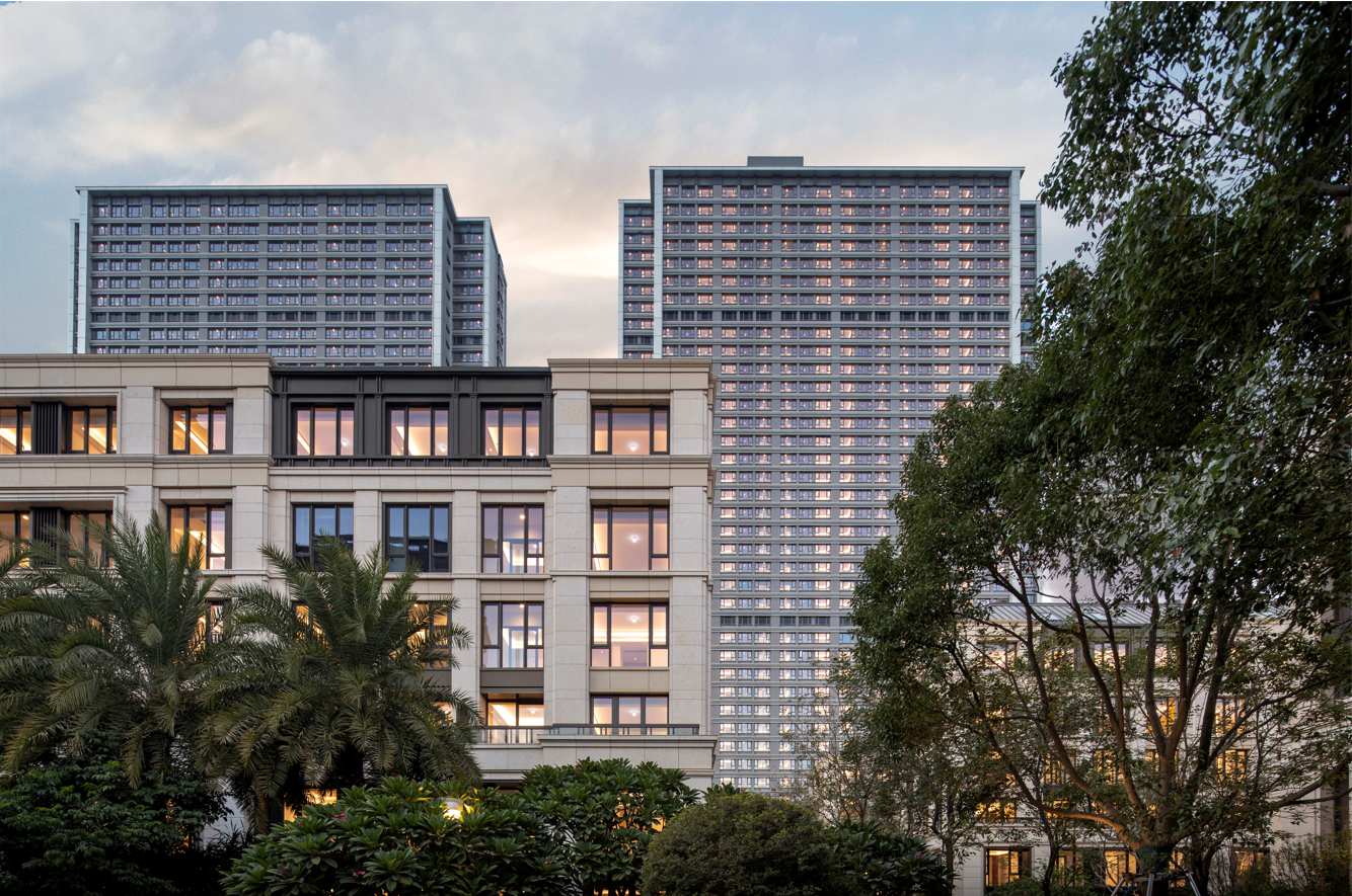 叠墅的立面设计跳脱了传统建筑审美,精选全进口贝鲁特石材干挂工艺及部分铝板,经典三段式建筑,保留了古典建筑神韵的同时又顺应现代简洁的审美,真是顺应了一句来自业主的评价:“融创的房子就是养眼”。