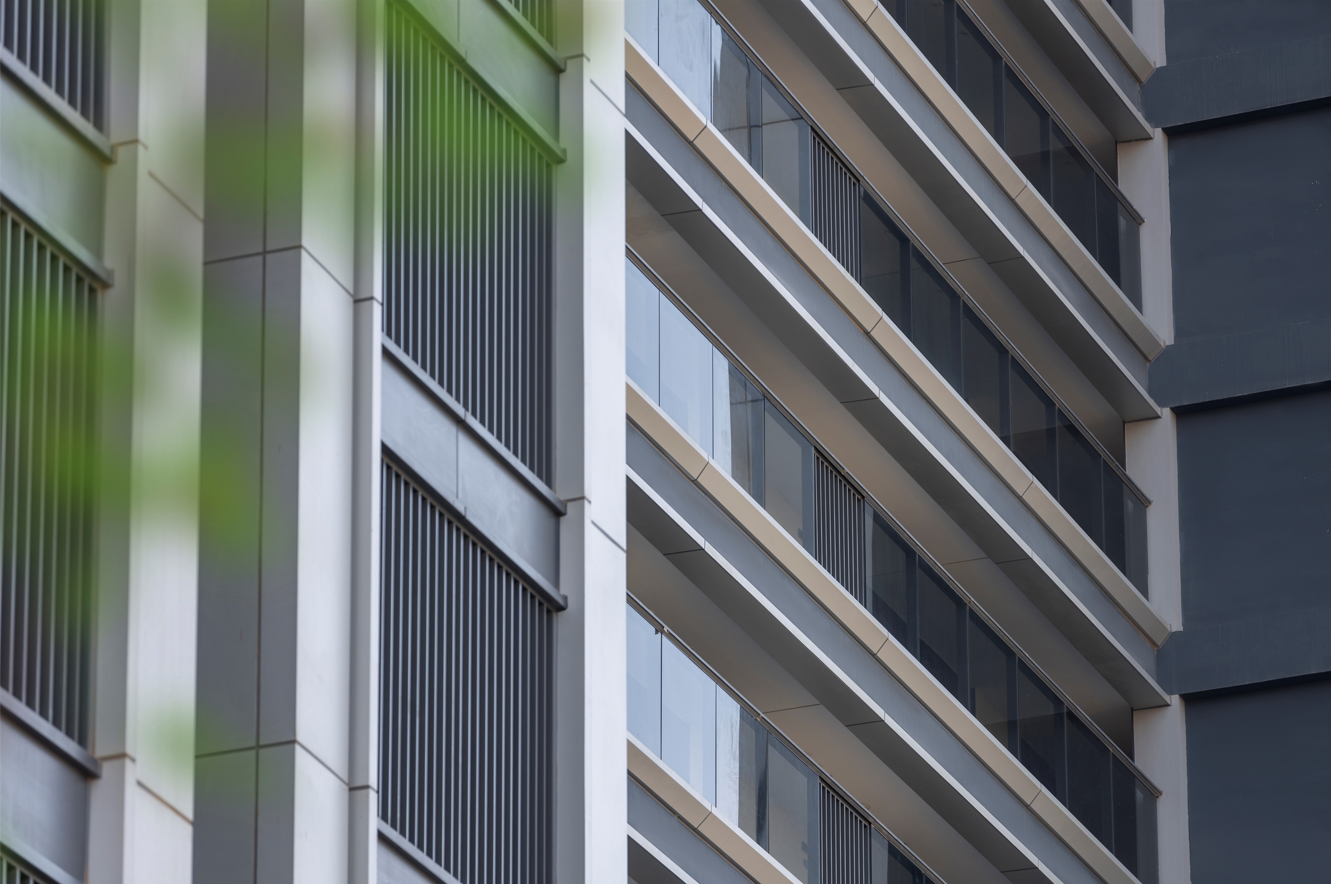 而养眼的背后是产品力。据工作人员介绍,石材干挂外立面在施工工艺上,石材干挂骨架系统同主体施工一起的前置预埋,这种工法,龙骨用钢量是比传统做法要高出20%,但优点是让石材立面与建筑整体更牢固契合。