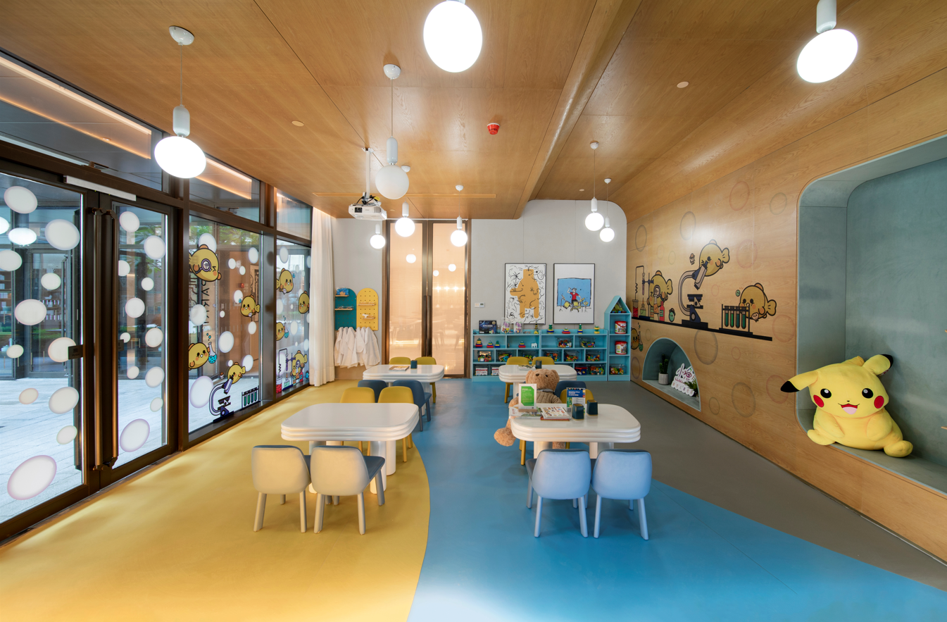 书享空间配置了泛阅读书籍和儿童绘本,采用了木饰面书柜作为隔断,打造了一个个静谧的个人区,兼备阅读、写作、办公、休闲等多重功能,也是不定期举行好书推荐、读书沙龙的社群空间。足迹空间内,专业的健身器械,瑜伽室、淋浴房和更衣室,一应俱全。果壳空间,则是专属孩子们的社交平台,也是日常人气最高的玩乐场所。乐活空间,专为长者定制。品茶聊天、下棋对弈……内部还可举办小型书画展览,承接社群活动,让生活焕发活力。