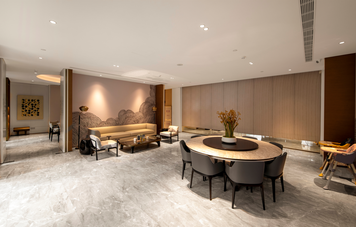 同时,考量城市高净值人群的需求,东南府创新性的打造了城市会客厅,商务会晤、私人接待、小型座谈会等一应俱全。party house,配备中央厨房、高端宴请圆桌及可布置的派对场景,匹配合作的多家酒店选择,体面的接待宴请,在自家小区里就能完成。