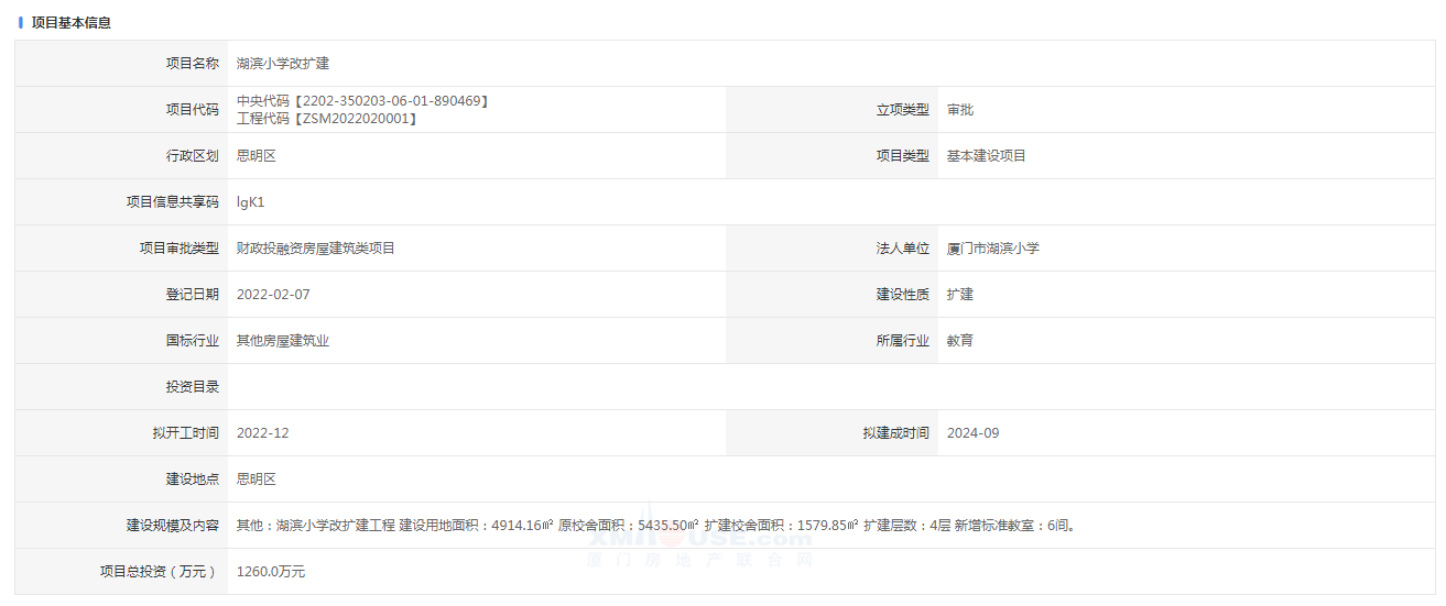 项目建设用地面积4914.16㎡,原校舍面积5435.5㎡,扩建校舍面积1579.85㎡,扩建层数4层,新增标准教室6间。项目总投资约1260万元,计划今年12月开工,预计2024年9月建成。