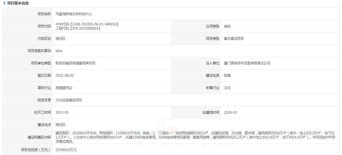 近日,马銮湾新城文体科技中心项目报建信息公布。
