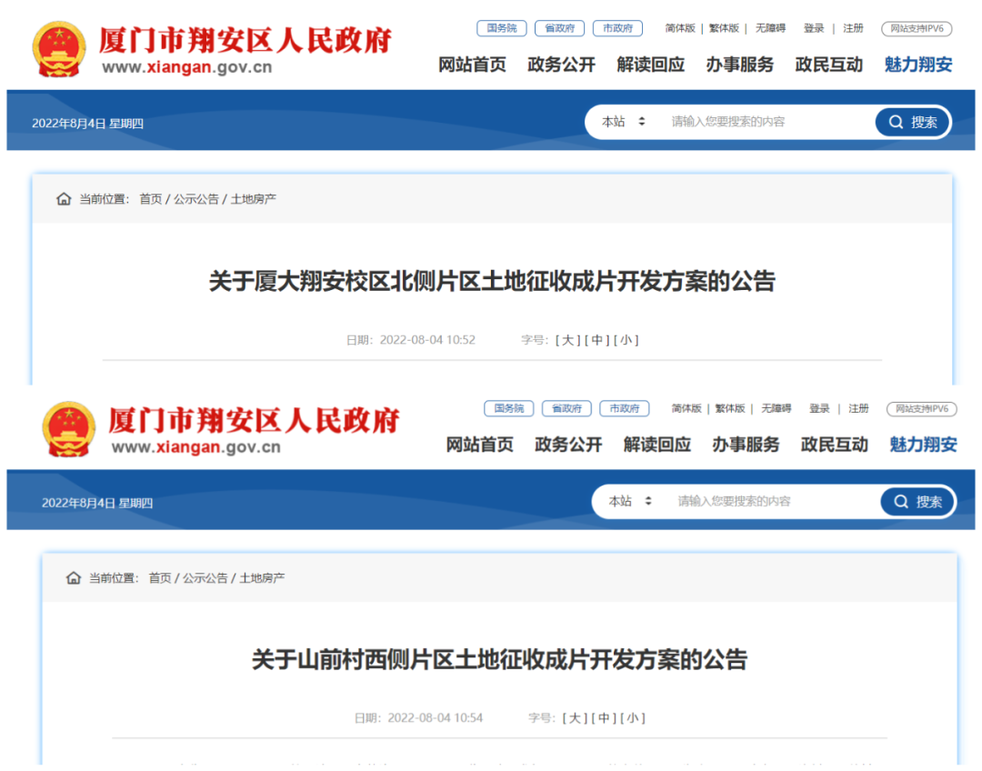 近日,翔安区人民政府发布关于厦大翔安校区北侧片区土地征收成片开发方案、山前村西侧片区土地征收成片开发方案的公告。方案涉及翔安马巷、翔安厦大片区,规划住宅用地、建设高品质商务办公区,开发范围总面积超19公顷。